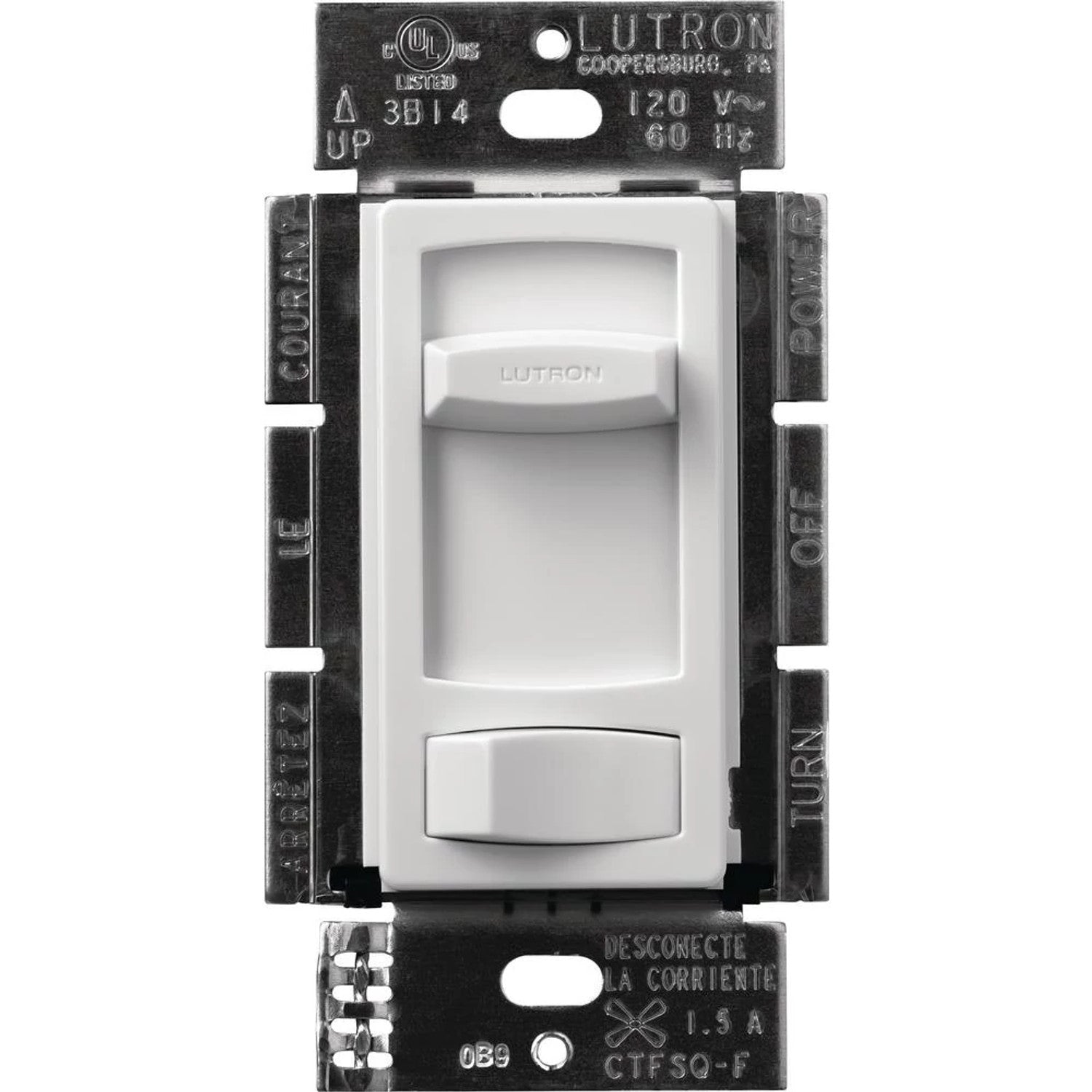 The Lutron Skylark Contour Quiet Fan Speed Control is designed to conveniently set the speed of a single ceiling paddle fan. Install in a single pole or 3-way application; no neutral required. The Skylark Contour Fan Control features a smooth, linear slider to adjust the fan’s speed and a rocker switch that turns the fan ON/OFF. Select between 3- speeds (Low/Medium/High) for a favorite preset level with the slider. Available in 7 gloss colors. Pairs perfectly with Lutron Claro wall plates for consistent color matching (sold separately).